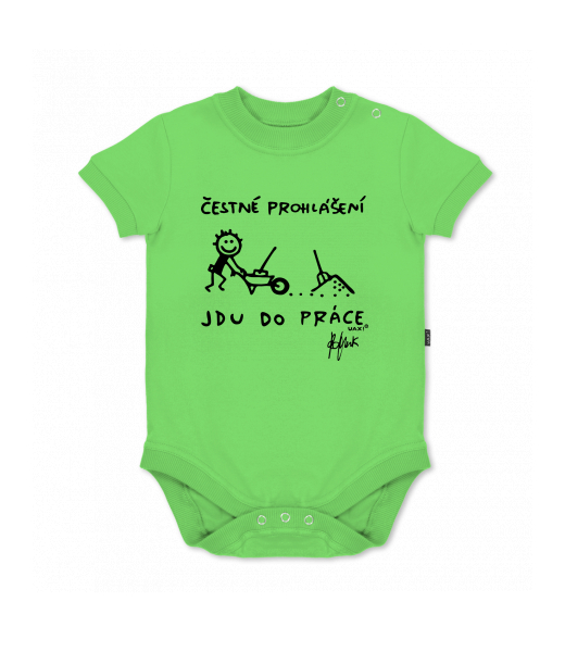 UAX baby body SHORT for kid with design 1304 ČESTNÉ PROHLÁŠENÍ JDU DO PRÁCE in color APPLE