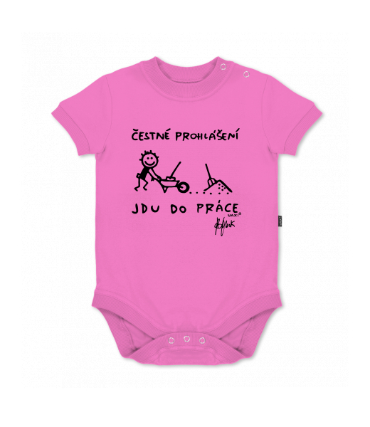 UAX baby body SHORT for kid with design 1304 ČESTNÉ PROHLÁŠENÍ JDU DO PRÁCE in color CLASSIC PINK