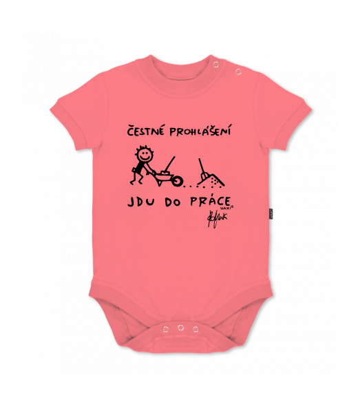 UAX baby body SHORT for kid with design 1304 ČESTNÉ PROHLÁŠENÍ JDU DO PRÁCE in color LOSOSOVA