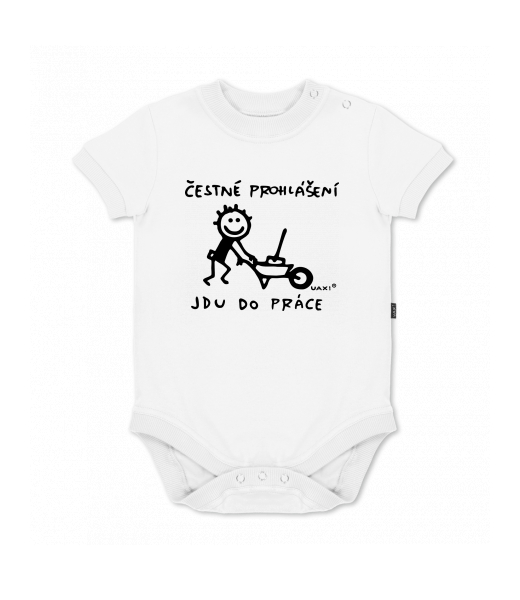 UAX baby body SHORT for kid with design 1305 ČESTNÉ PROHLÁŠENÍ JDU DO PRÁCE 2 in color WHITE