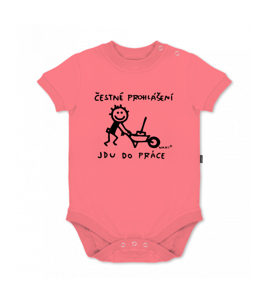 UAX baby body SHORT for kid with design 1305 ČESTNÉ PROHLÁŠENÍ JDU DO PRÁCE 2 in color LOSOSOVA