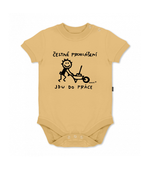 UAX baby body SHORT for kid with design 1305 ČESTNÉ PROHLÁŠENÍ JDU DO PRÁCE 2 in color MUSTARD
