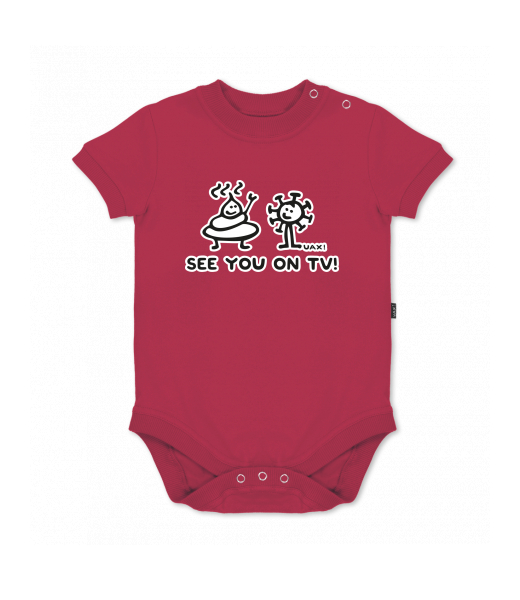 UAX baby body SHORT for kid with design 1306 SEE YOU ON TV in color CHILLY PEPPER RED