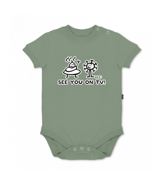 UAX baby body SHORT for kid with design 1306 SEE YOU ON TV in color OLIVA