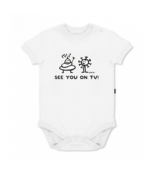 UAX baby body SHORT for kid with design 1306 SEE YOU ON TV in color WHITE