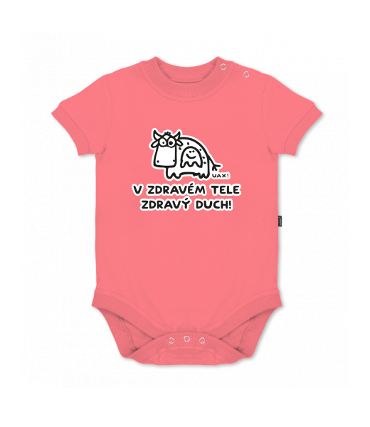 UAX baby body SHORT for kid with design 1309 V ZDRAVÉM TELE ZDRAVÝ DUCH in color LOSOSOVA