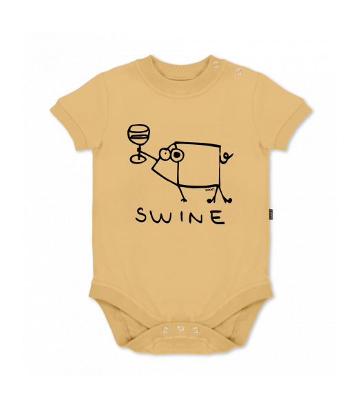 UAX baby body SHORT for kid with design 1323 SWINE in color MUSTARD