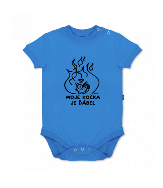 We make sustainable UAX clothing! - hand sewn in the Czech Republic uaxKids uaxAll productsBaby bodyBABY BODY SHORTdesign 1326 - MOJE KOČKA JE ĎÁBELCAPRI BLUE