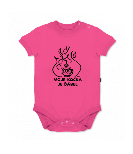We make sustainable UAX clothing! - hand sewn in the Czech Republic uaxKids uaxAll productsBaby bodyBABY BODY SHORTdesign 1326 - MOJE KOČKA JE ĎÁBELINDIAN LILA