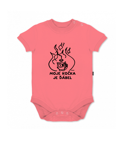 UAX baby body SHORT for kid with design 1326 MOJE KOČKA JE ĎÁBEL in color LOSOSOVA