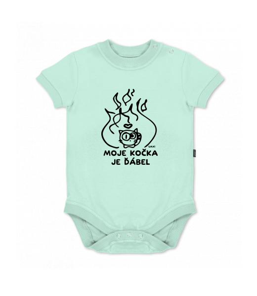 We make sustainable UAX clothing! - hand sewn in the Czech Republic uaxKids uaxAll productsBaby bodyBABY BODY SHORTdesign 1326 - MOJE KOČKA JE ĎÁBELMINT
