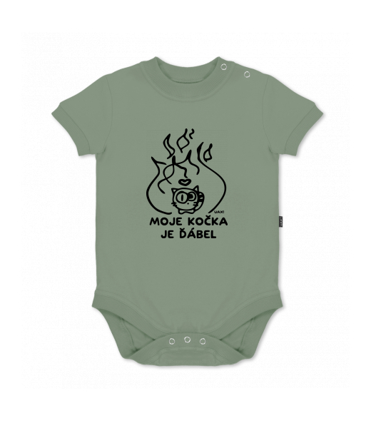 We make sustainable UAX clothing! - hand sewn in the Czech Republic uaxKids uaxAll productsBaby bodyBABY BODY SHORTdesign 1326 - MOJE KOČKA JE ĎÁBELOLIVA