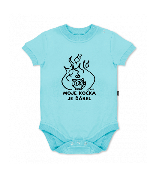 We make sustainable UAX clothing! - hand sewn in the Czech Republic uaxKids uaxAll productsBaby bodyBABY BODY SHORTdesign 1326 - MOJE KOČKA JE ĎÁBELPASTEL BLUE