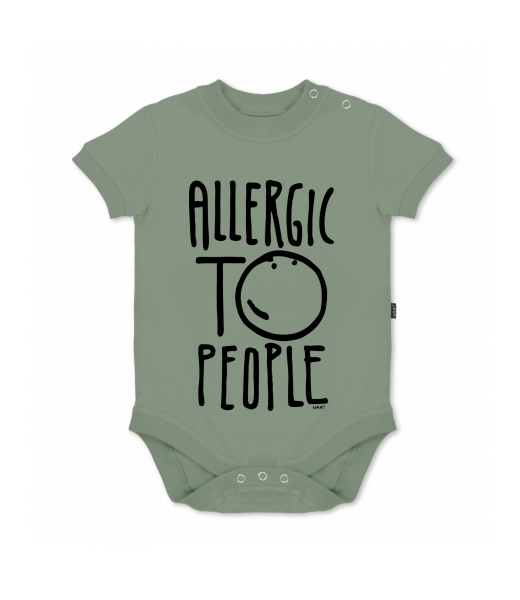 UAX baby body SHORT for kid with design 1329 ALLERGIC TO PEOPLE in color OLIVA