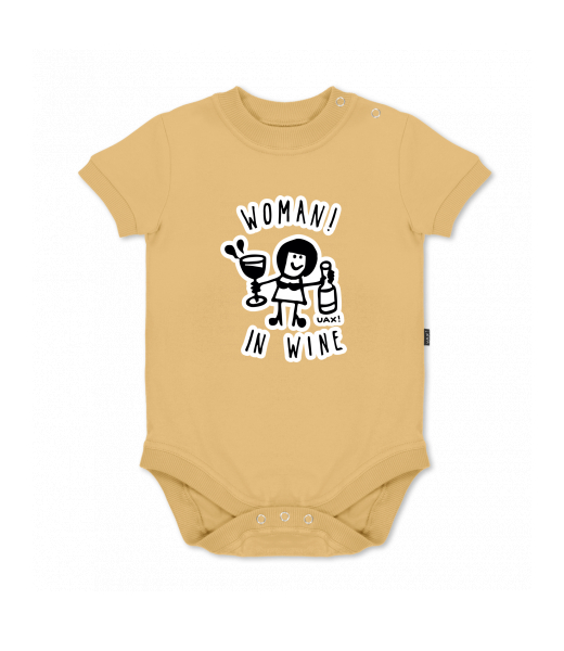 UAX baby body SHORT for kid with design 1347 WOMAN IN WINE 2 in color MUSTARD
