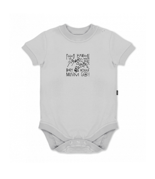 UAX baby body SHORT for kid with design 1368 POOOĎ KAMOON HORY MUSÍM JÍT GO in color CEMENT