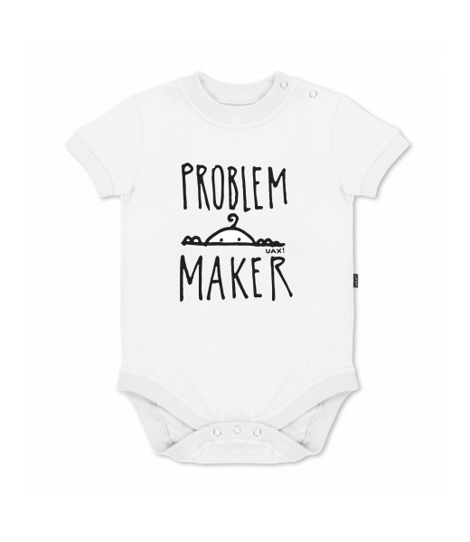 UAX baby body SHORT for kid with design 1385 PROBLEM MAKER in color WHITE