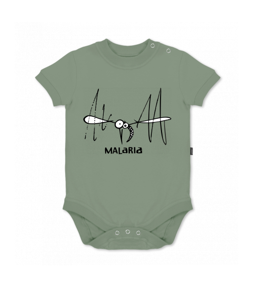 UAX baby body SHORT for kid with design 361 MALARIA in color OLIVA
