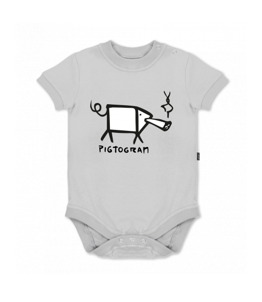 UAX baby body SHORT for kid with design 367 PIGTOGRAM in color CEMENT