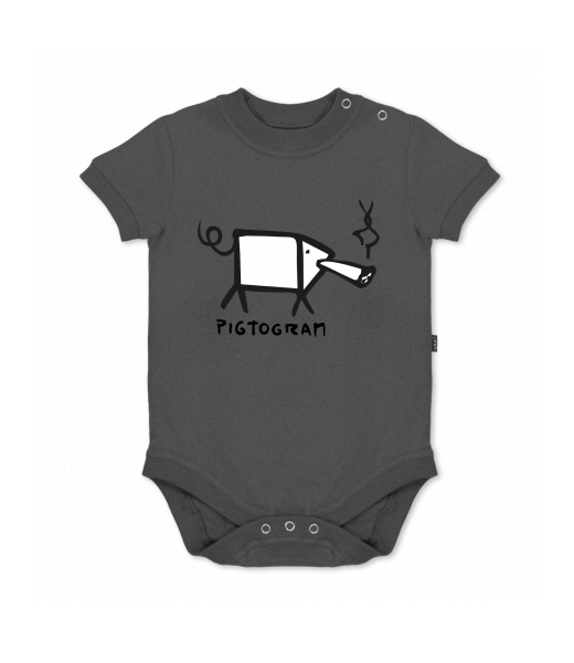 UAX baby body SHORT for kid with design 367 PIGTOGRAM in color GRAFIT
