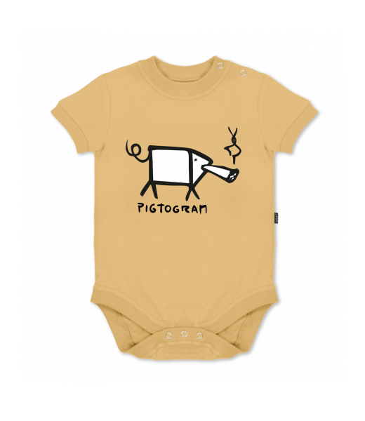 UAX baby body SHORT for kid with design 367 PIGTOGRAM in color MUSTARD