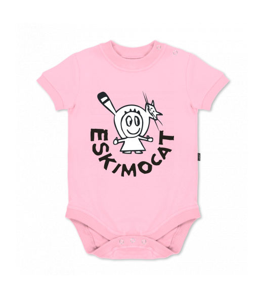 UAX baby body SHORT for kid with design 375 ESKIMOCAT in color BABY PINK