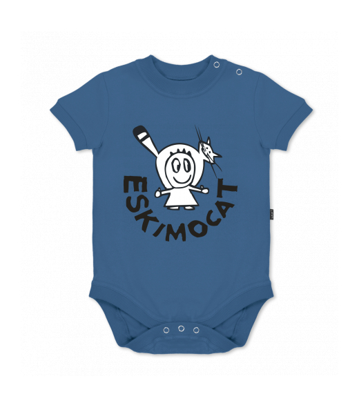 UAX baby body SHORT for kid with design 375 ESKIMOCAT in color MOONLIGHT BLUE