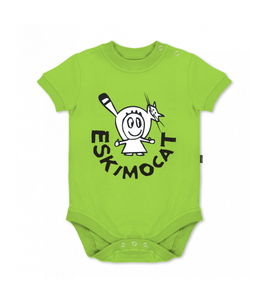 UAX baby body SHORT for kid with design 375 ESKIMOCAT in color PARROT GREEN