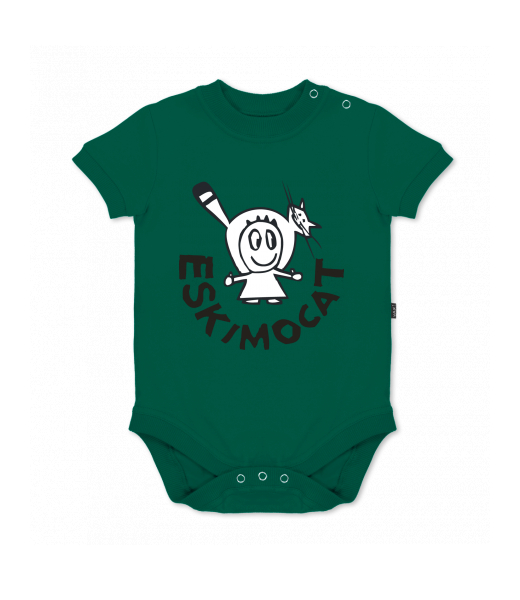 UAX baby body SHORT for kid with design 375 ESKIMOCAT in color UNIVERSITY GREEN