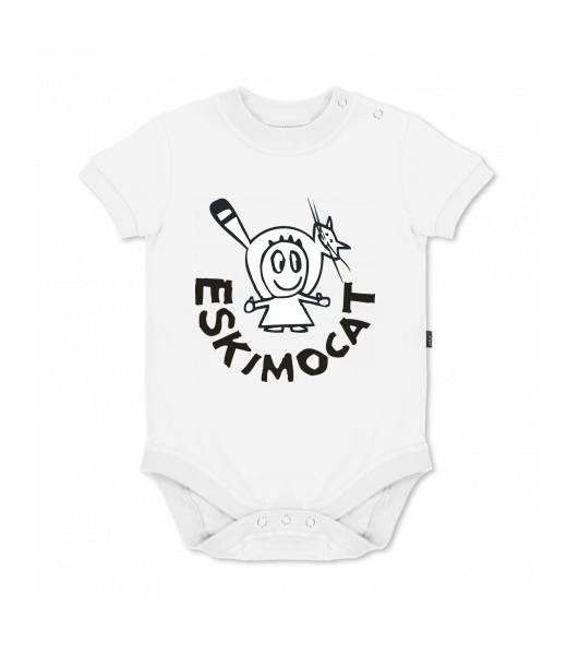 UAX baby body SHORT for kid with design 375 ESKIMOCAT in color WHITE