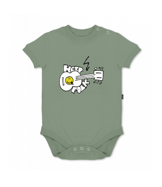 UAX baby body SHORT for kid with design 441 KEEP FOLK in color OLIVA