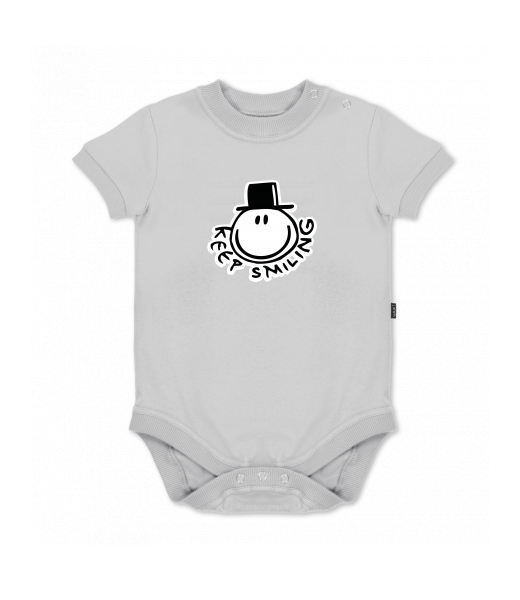 UAX baby body SHORT for kid with design 517 KEEP SMILING in color CEMENT