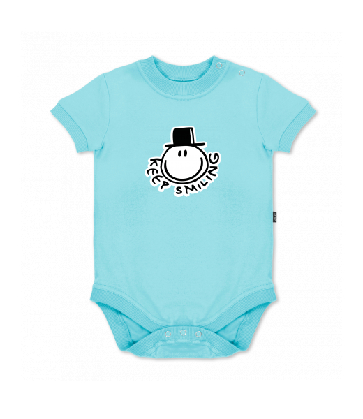 UAX baby body SHORT for kid with design 517 KEEP SMILING in color PASTEL BLUE