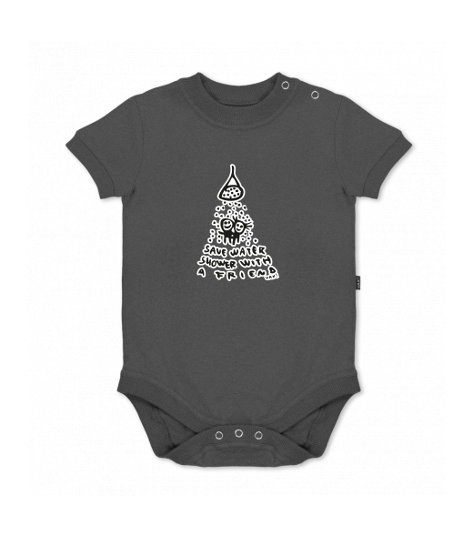 UAX baby body SHORT for kid with design 519 SAVE WATER in color GRAFIT
