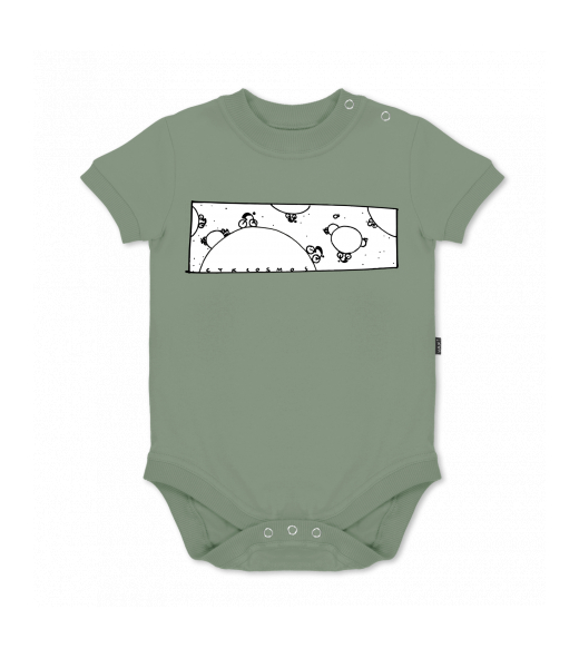 UAX baby body SHORT for kid with design 55 CYCLOCOSMOS in color OLIVA