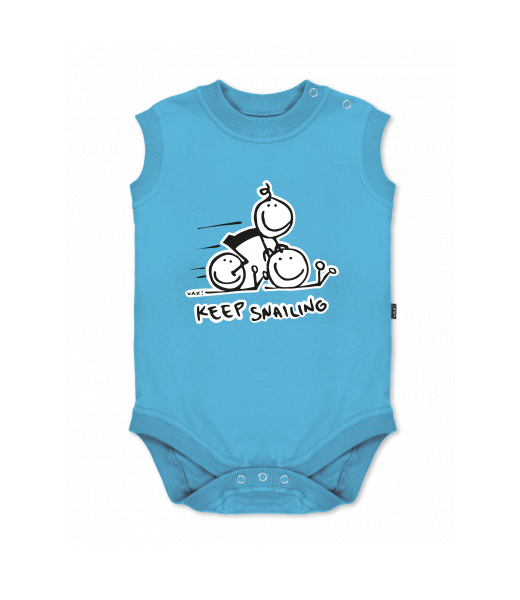 Baby body sleeveless with design for kid with design 1017 KEEP SNAILING in color BLUE ATOLL