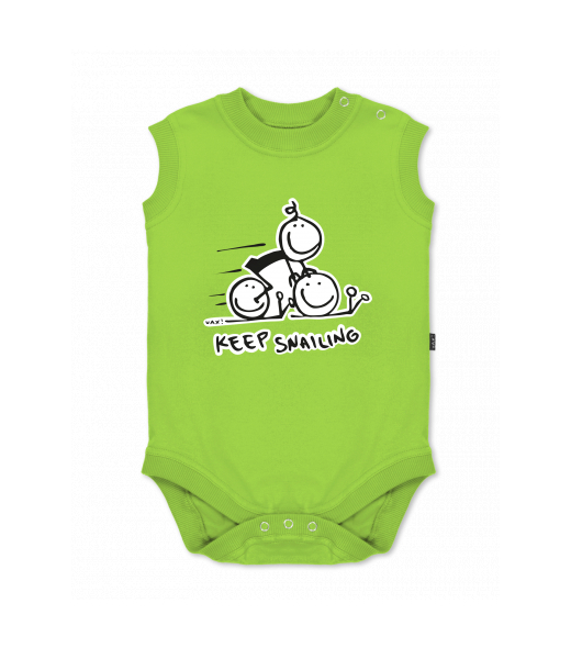 We make sustainable UAX clothing! - hand sewn in the Czech Republic uaxKids uaxAll productsBaby bodyBABY BODY SLEEVELESSdesign 1017 - KEEP SNAILINGPARROT GREEN