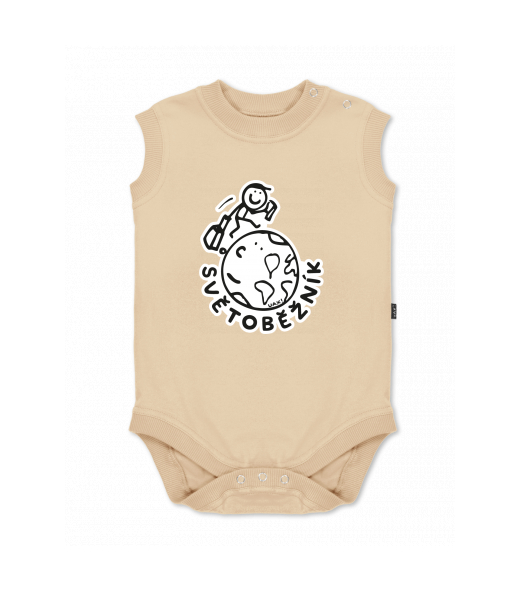 Baby body sleeveless with design for kid with design 1047 SVĚTOBĚŽNÍK in color CARAMEL