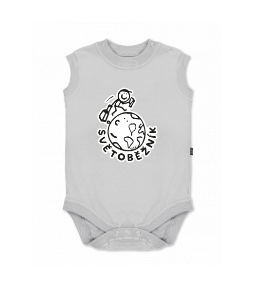 Baby body sleeveless with design for kid with design 1047 SVĚTOBĚŽNÍK in color CEMENT