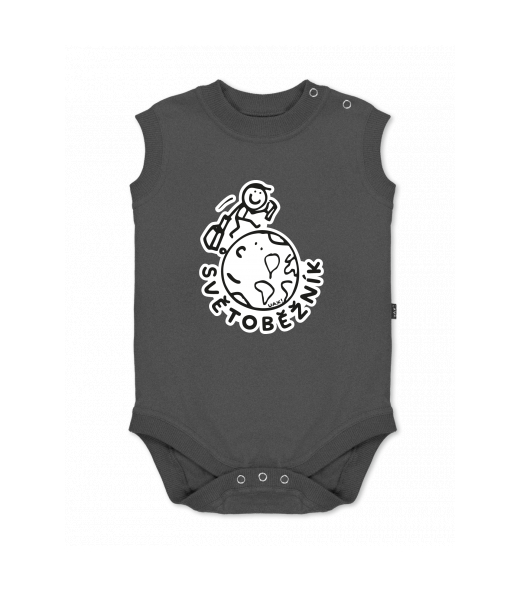 Baby body sleeveless with design for kid with design 1047 SVĚTOBĚŽNÍK in color GRAFIT