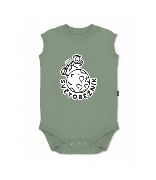 Baby body sleeveless with design for kid with design 1047 SVĚTOBĚŽNÍK in color OLIVA