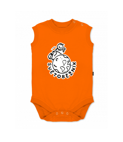 Baby body sleeveless with design for kid with design 1047 SVĚTOBĚŽNÍK in color SIGNAL ORANGE