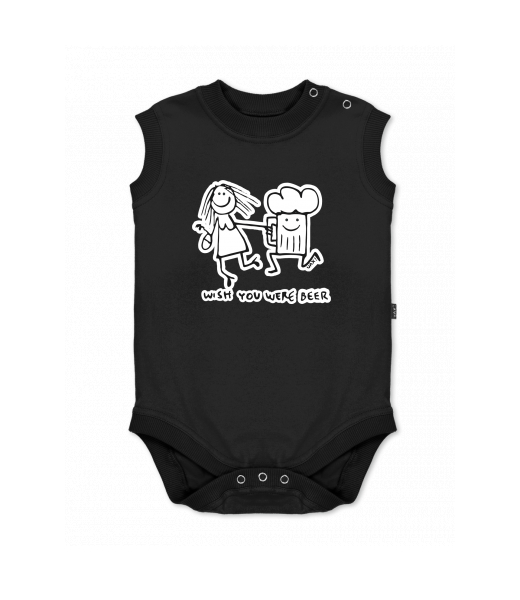 We make sustainable UAX clothing! - hand sewn in the Czech Republic uaxKids uaxAll productsBaby bodyBABY BODY SLEEVELESSdesign 1049 - WISH YOU WERE BEERBLACK