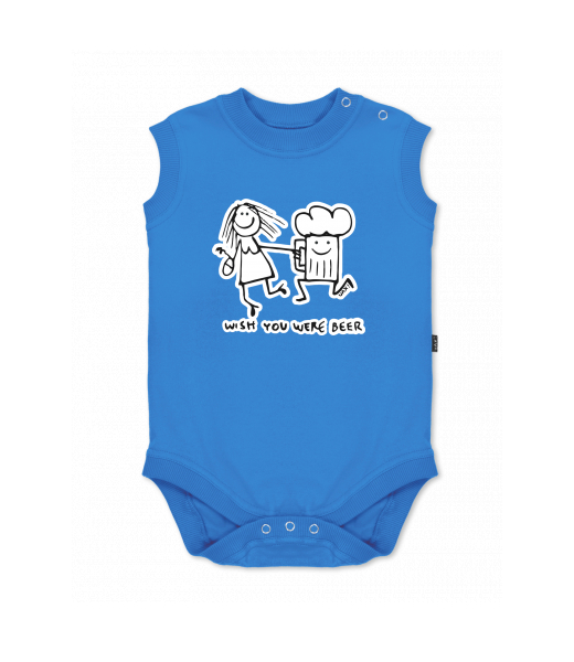 Baby body sleeveless with design for kid with design 1049 WISH YOU WERE BEER in color CAPRI BLUE