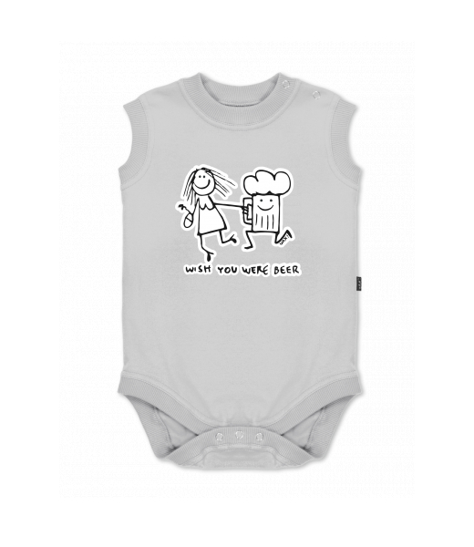 Baby body sleeveless with design for kid with design 1049 WISH YOU WERE BEER in color CEMENT
