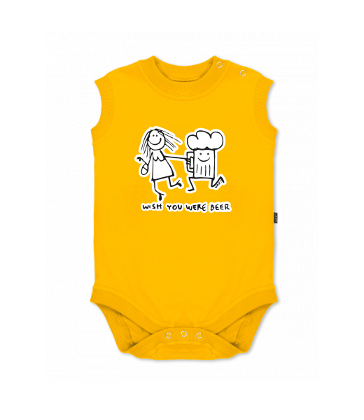Baby body sleeveless with design for kid with design 1049 WISH YOU WERE BEER in color GOLDEN CREAM