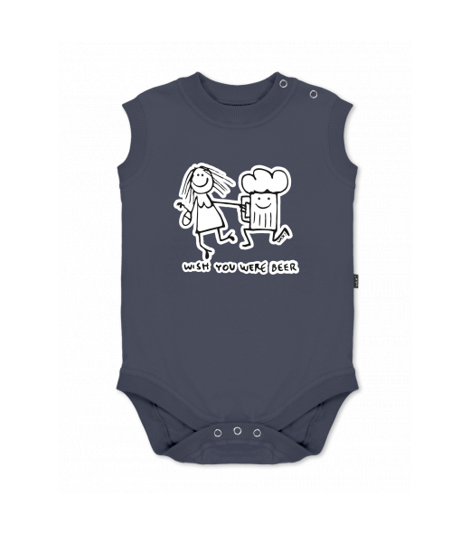 Baby body sleeveless with design for kid with design 1049 WISH YOU WERE BEER in color GRAY INK