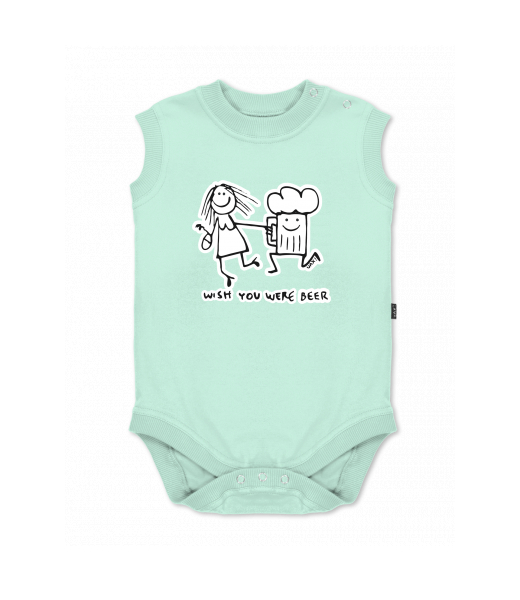 Baby body sleeveless with design for kid with design 1049 WISH YOU WERE BEER in color MINT