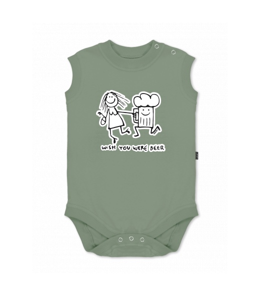 Baby body sleeveless with design for kid with design 1049 WISH YOU WERE BEER in color OLIVA