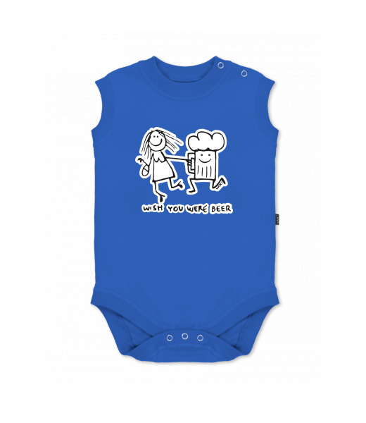 We make sustainable UAX clothing! - hand sewn in the Czech Republic uaxKids uaxAll productsBaby bodyBABY BODY SLEEVELESSdesign 1049 - WISH YOU WERE BEERROYAL BLUE